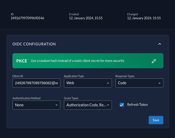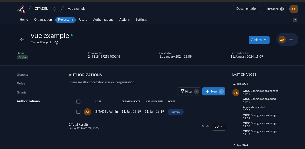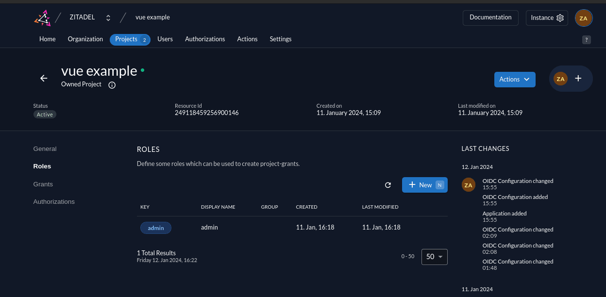 Now that you have configured your web application on the ZITADEL side, you can proceed with the integration of your Vue client.