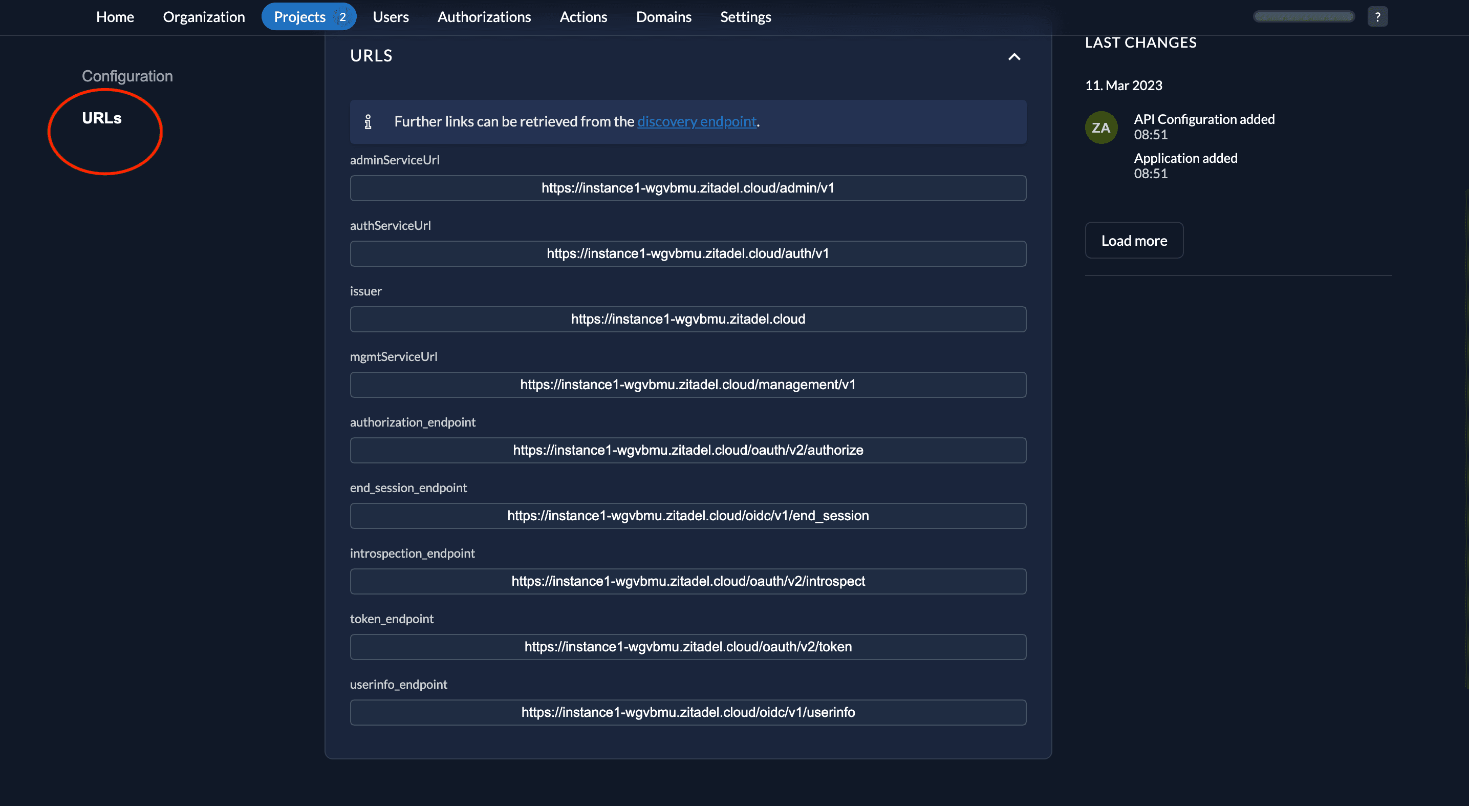 - When you click on URLs on the left, you will see the relevant OIDC URLs. Note down the issuer URL, token_endpoint and introspection_endpoint.