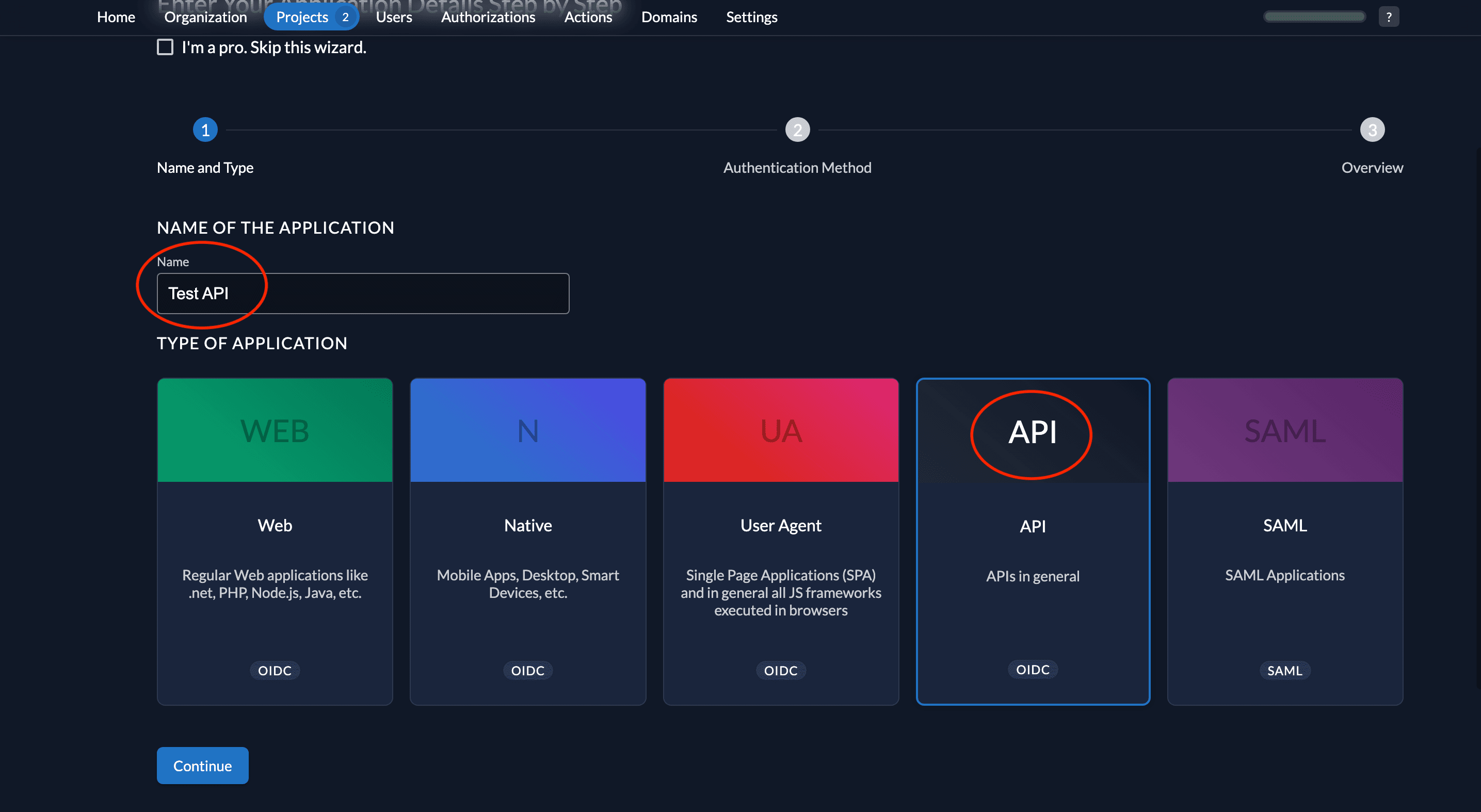 https://example.zitadel.cloudorhttp://localhost:8080 .json-key-file for the API, from the application- ID of the project