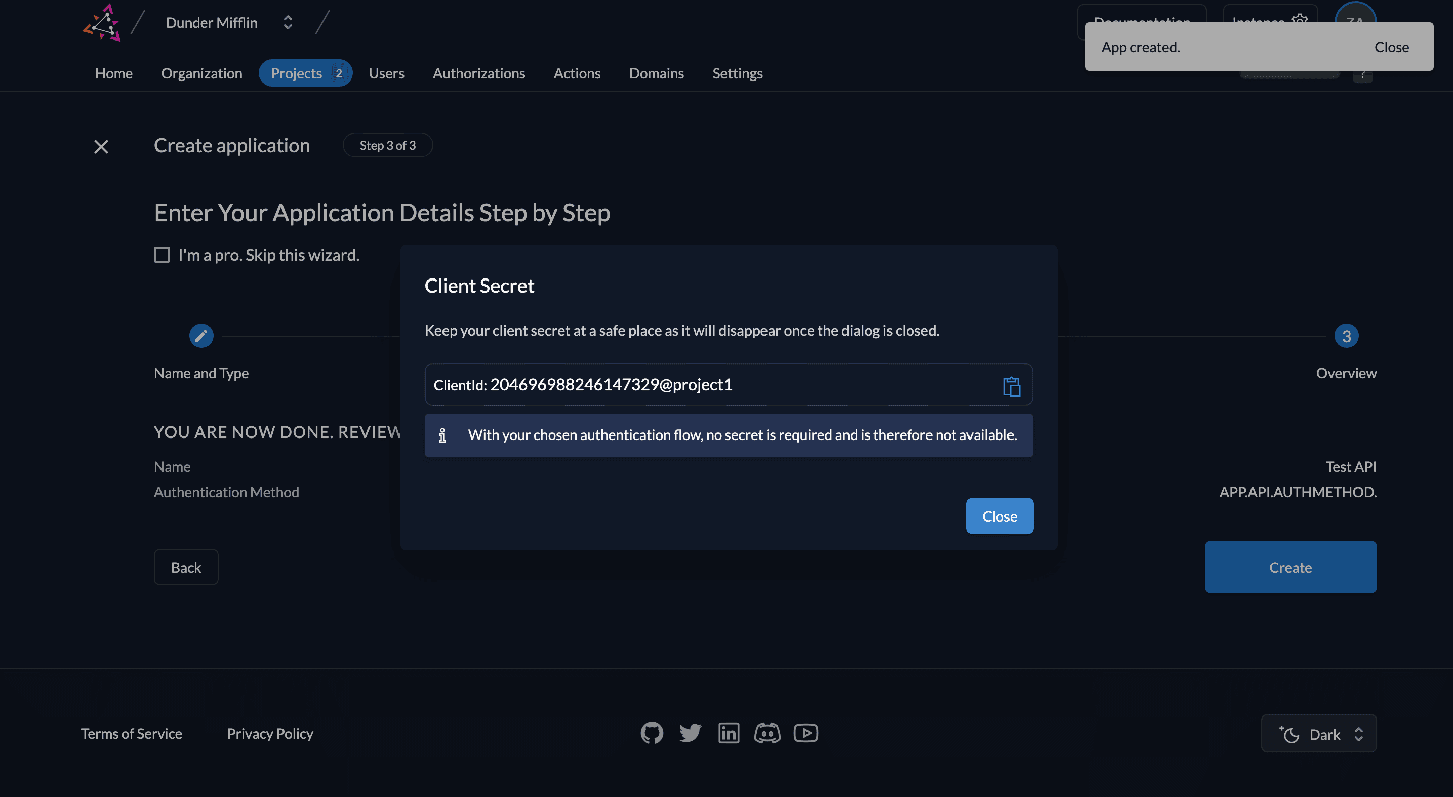 Before we can start building our application, we have to do a few setup steps in ZITADEL Management Console.