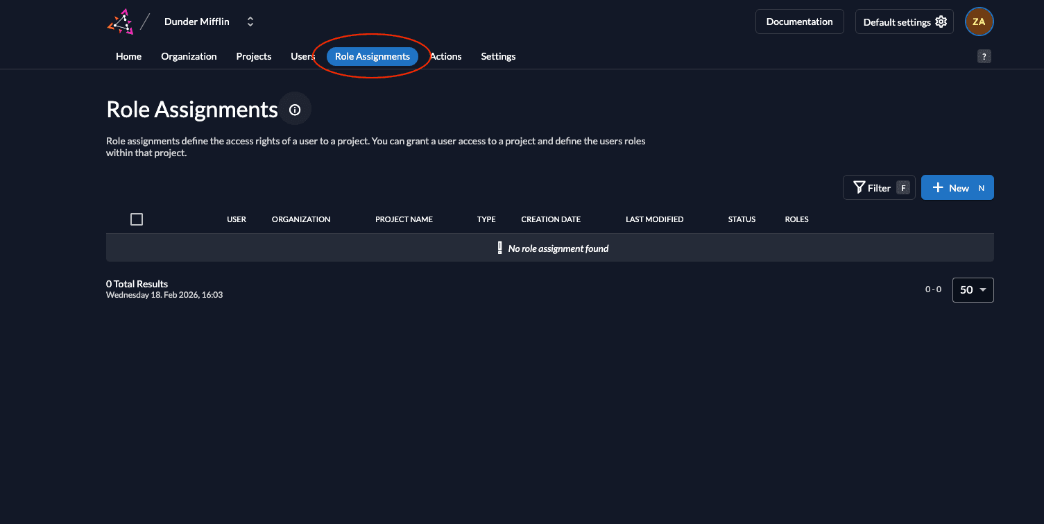 - Go to your project and select Roles. Click New.