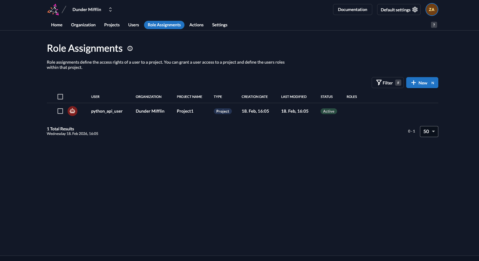 In order to access this route, you must create the role read:messages in your ZITADEL project and also assign a role to the service account you created by adding the role to the user. Follow these steps to do so: