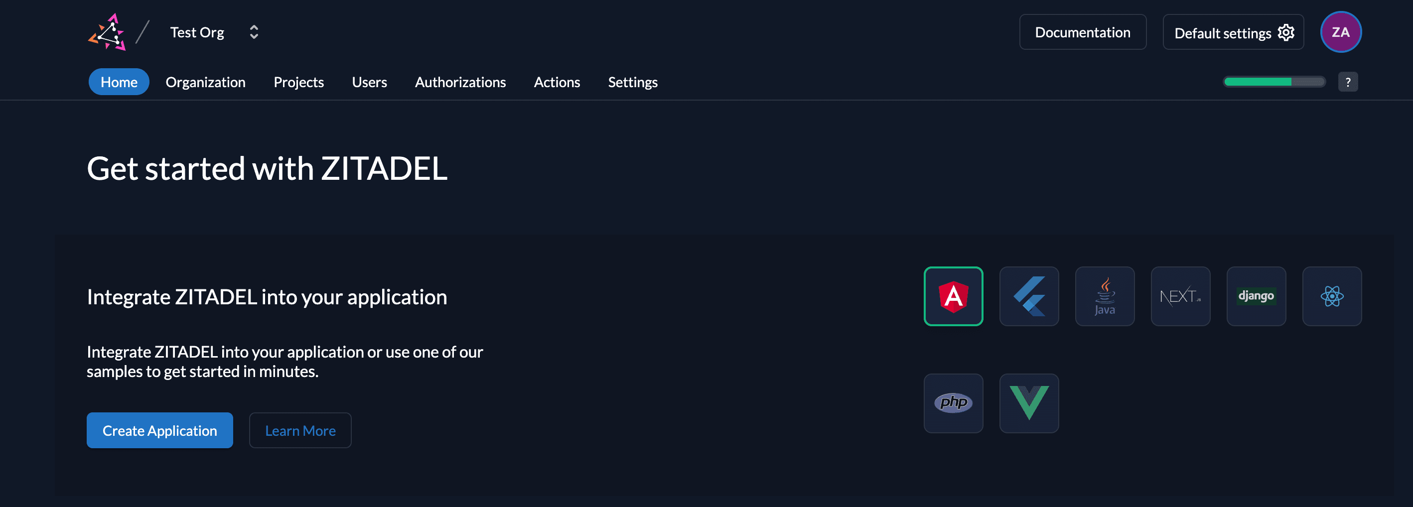 You can integrate Zitadel quickly into your application and be up and running within minutes. To achieve your goals as fast as possible, we provide you with SDKs, Example Repositories and Guides.